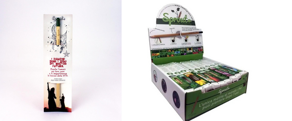 Riassortimento anche per le matite SPROUT in versione classica e bomboniera, con una novità che vedete in foto (I bambini sono i semi del nostro futuro), riassortiti anche gli espositori.