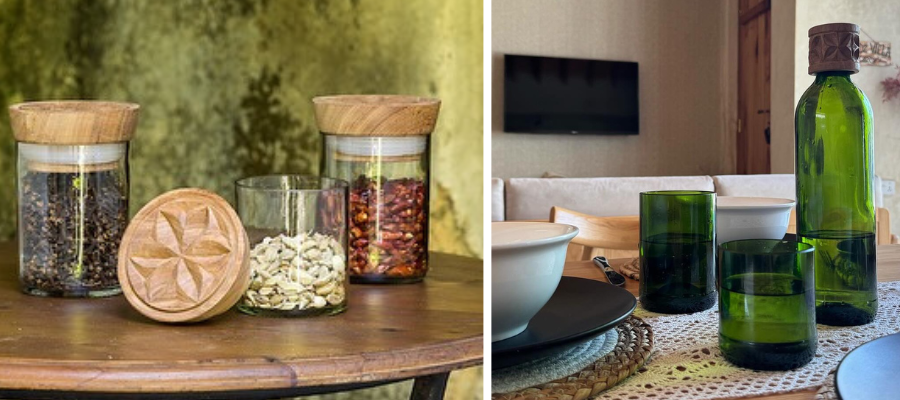 Oggetti in vetro dalla bellezza semplice ed elegante: sono realizzati da Chako, organizzazione di Zanzibar e sono un regalo adatto a tante occasioni e persone, perchè sono utili e belli allo stesso stempo. Portalumini per creare atmosfera, vasi multiuso per fiori o da portare in tavola come brocche, bicchieri e contenitori per spezie, sale, zucchero, granola, sono tutti realizzati a partire da vetro recuperato da bottiglie usate begli alberghi dell’isola, un’occasione per trasformare in design qualcosa che altrimenti verrebbe gettato.