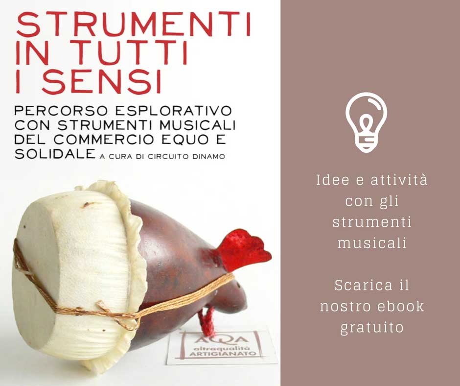 La musica e in particolare gli strumenti musicali prodotti da organizzazioni del Sud del Mondo sono al centro di questo percorso pensato come stimolo per incontrare e capire affascinanti materiali sonori, a volte tanto misteriosi (nel loro utilizzo soprattutto) quanto preziosi. Conoscerli significa riuscire a farli apprezzare anche a coloro che entrano in Bottega, alle scuole, valorizzandoli come strumento non solo didattico in senso stretto, ma veicolo di educazione alla mondialità, all’ascolto e al rispetto per tutti i linguaggi prodotti dal pensiero e dalla creatività umana, in ogni punto del pianeta.