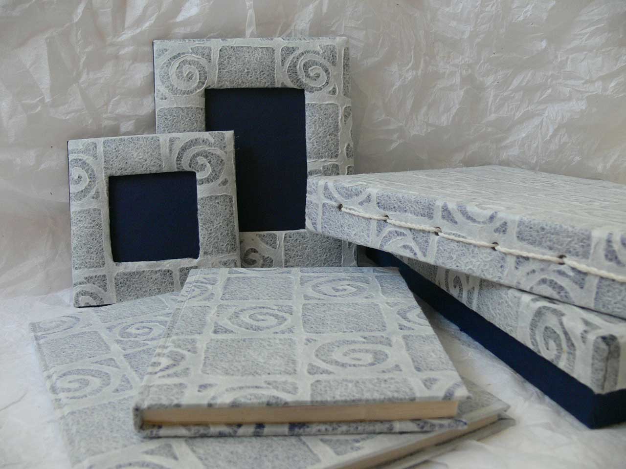 Linea macramè: carta dal delicatissimo effetto pizzo, realizzata attraverso un calco manuale applicato su un sottilissimo strato di impasto di carta ancora fresco, in modo che i disegni e i contorni si vengano a creare durante l’asciugatura e restino volutamente leggeri, diafani, non definiti per dare appunto l’effetto di un merletto.