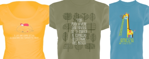 Anche quest’anno, come per ogni collezione abbiamo voluto che le t-shirt portassero con sè un messaggio e abbiamo scelto il mondo delle favole come luogo di significati importanti. Le favole, infatti, sono narrazioni che racchiudono elementi universali, perchè usate dall’uomo, fin dalla notte dei tempi, per trasmettere quelle conoscenze indispensabili per sopravvivere a contatto con animali pericolosi, spazi inesplorati e oscuri, fenomeni naturali. E in un mondo complesso come il nostro, dove gli spazi bui sono più metaforici che fisici, le favole ancora hanno un compito importante da svolgere. Paure, stereotipi, diffidenze che si trasformano nell’incapacità di vedere e accogliere l’altro, o di andare a fondo nella conoscenza di se stessi: davanti a queste prove le favole possono proporre punti di vista inediti e aiutarci a superare i pregiudizi. Parole da favola, la nostra nuova collezione di t-shirt, porta quindi con sè messaggi come questi: “Le fiabe insegnano che i draghi si possono sconfiggere”, “Il lupo sarà sempre cattivo se ascoltiamo solo Cappuccetto Rosso”, “Non puoi vivere una favola se ti manca il coraggio di entrare nel bosco”. Parole da indossare e ricordare affinchè diventino come i sassolini bianchi di Pollicino uno strumento per ritrovare la strada di casa di notte, nel bosco.