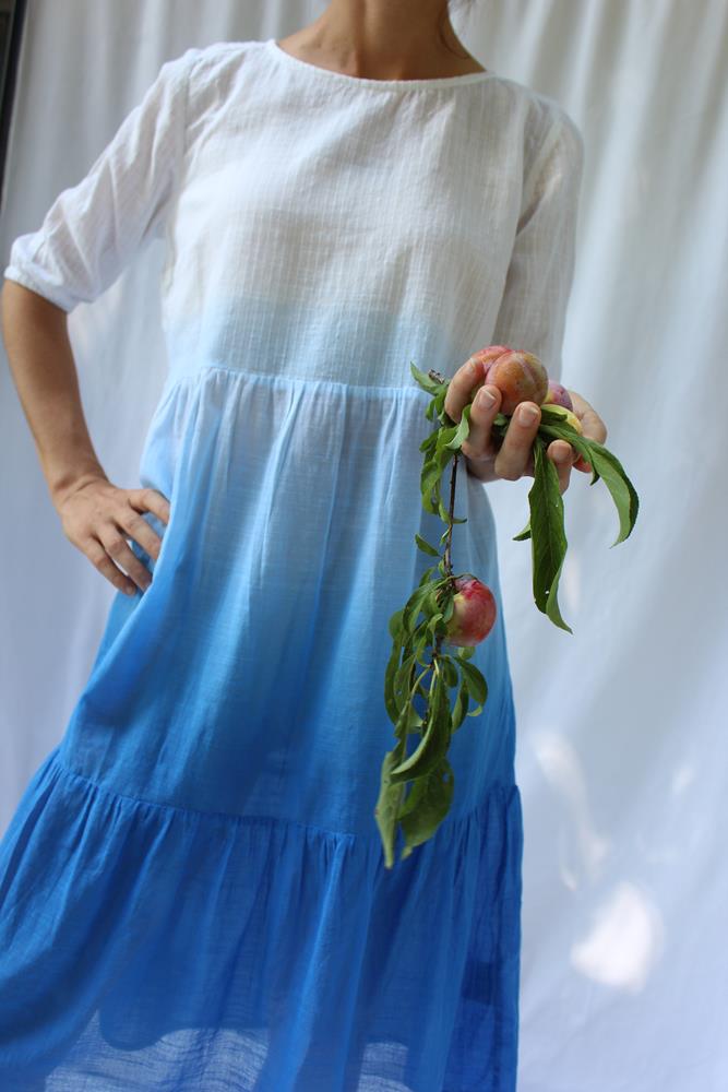 Il cotone è il protagonista di questa collezione: quello tessuto 100% biologico certificato GOTS per i capi realizzati da Assisi Garments, ma anche lavorato a sangallo, a voile, Sersucker, per i capi realizzati da Auromira, con stampa a vichy, un classico dell’estate, o tinto con la tecnica del dip tye che crea meravigliosi effetti sfumati dal basso verso l’alto.