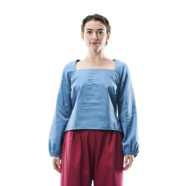 Blusa Dora, cotone, turchese, M
