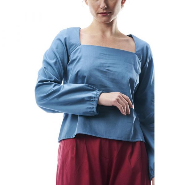 Blusa Dora, cotone, turchese, S