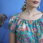 stampa a mano blockprint disegno Prato Fiorito multicolore su base pavone