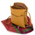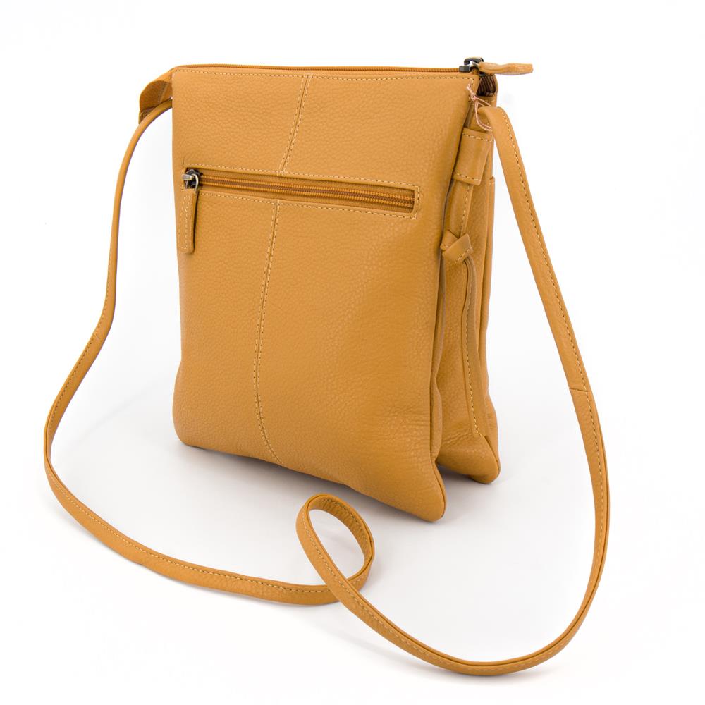 Borsa a tracolla media in morbida nappa bovina con chiusura a zip. Tasca piatta esterna con zip ed una con bottone magnetico. Tracolla semi-regolabile con nodi. Interno foderato in cotone a righe con due comparti definiti, tasca piccola con zip ed una senza.