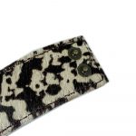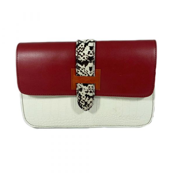 Questa borsa in pelle, unica nel suo genere, presenta una chiusura con passante, il che la rende una borsa dal doppio uso semplicemente capovolgendo lo stesso. Il passante, infatti, si presenta con un lato liscio e l’altro con pelo, mentre i due lati della borsa sono uno in pelle ruvida e uno in pelle liscia.