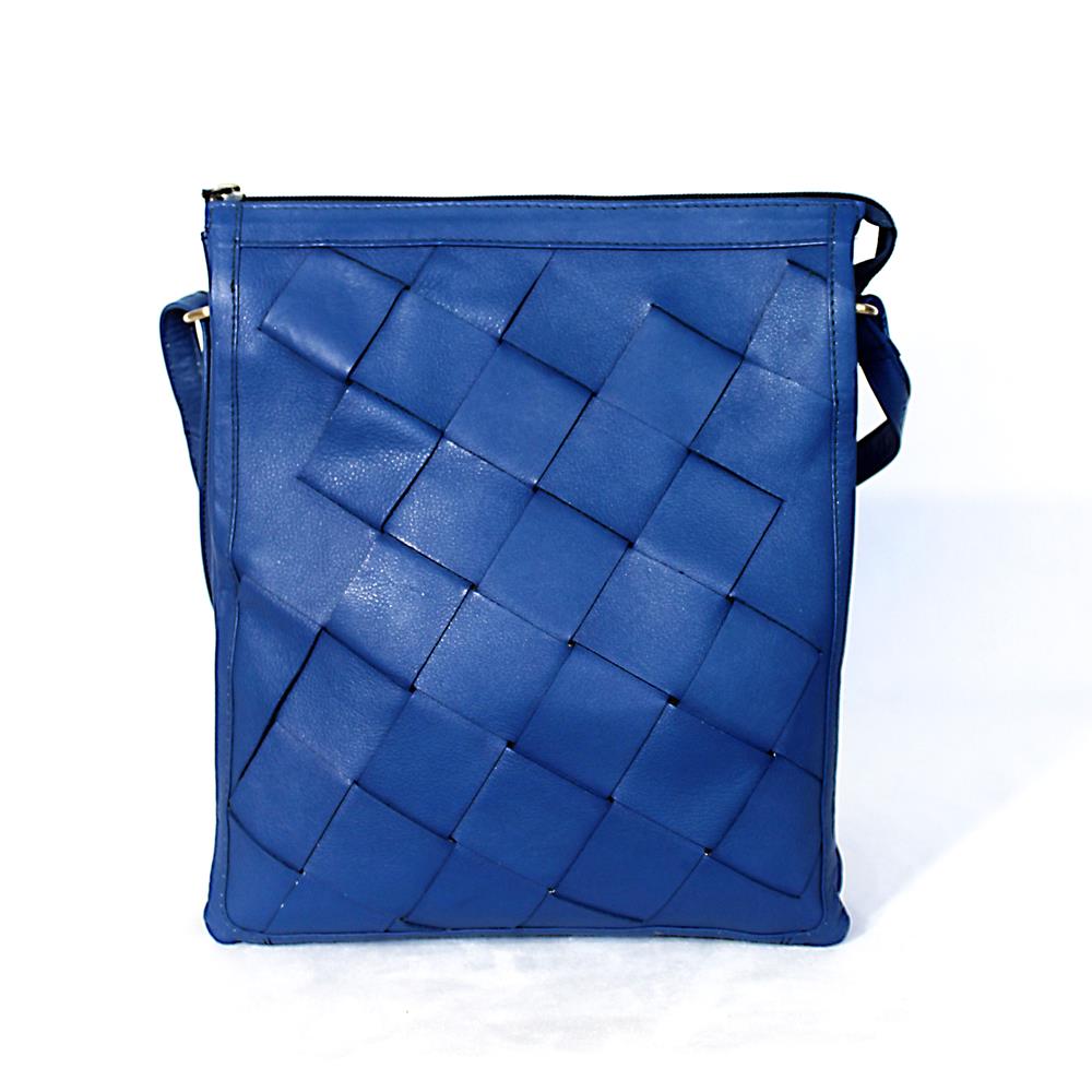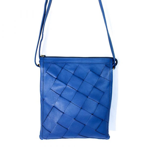 Borsa a tracolla media in morbida nappa bovina caratterizzata sul fronte da una lavorazione maxi intreccio. Tasca aggiuntiva piatta con zip sul retro. Interno foderato in cotone a righe, due scomparti principali con chiusura con zip, una tasca portaoggetti a soffietto e una tasca piatta con zip. Tracolla regolabile, dimensioni: lunghezza max 140cm, larghezza 1,5cm.