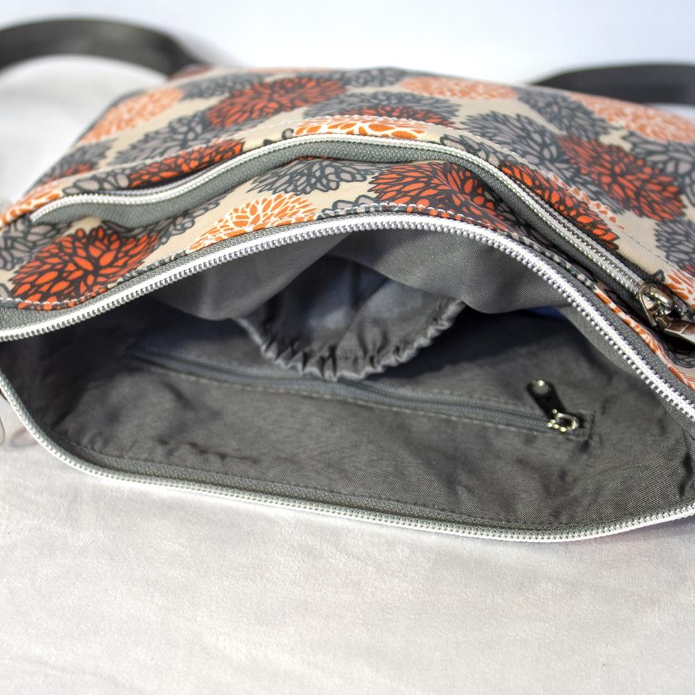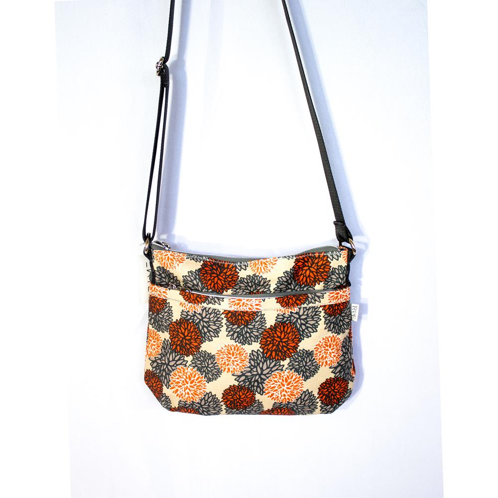 Borsa messanger media, in tessuto canvas stampato e rivestito, resistente all’acqua. Tracolla regolabile. Chiusura con zip. Interno foderato con due tasche: una a scomparto e l’altra con zip. Tasca anteriore con zip.
