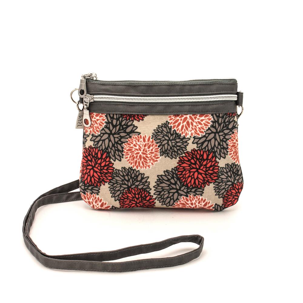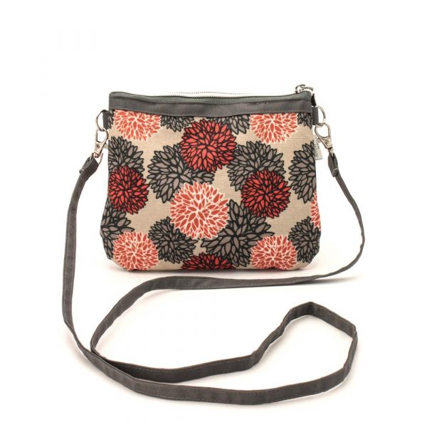 Borsa mini con tracolla rimovibile in tessuto canvas stampato e rivestito, resistente all’acqua. Colore base avorio Due scomparti con zip e interni foderati.