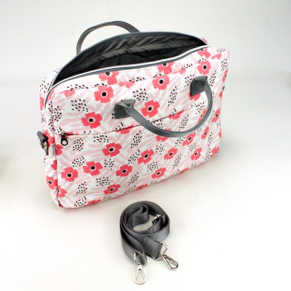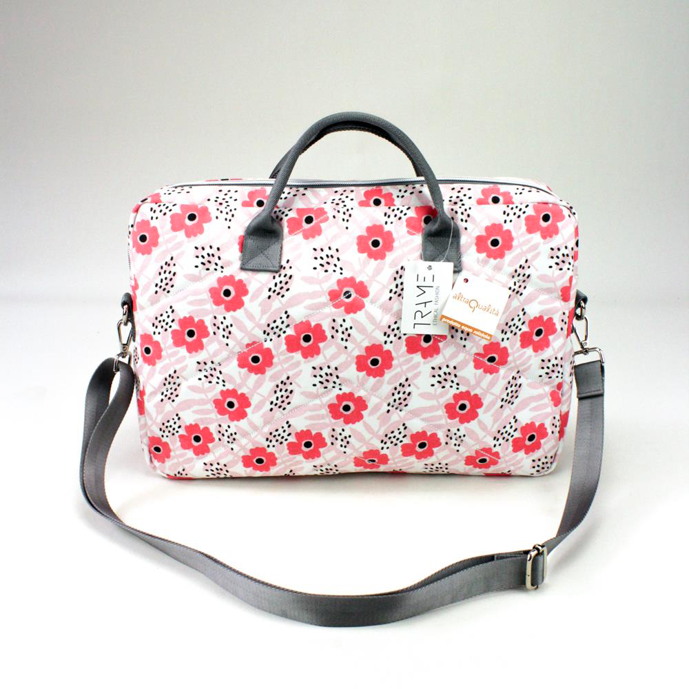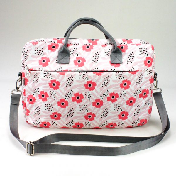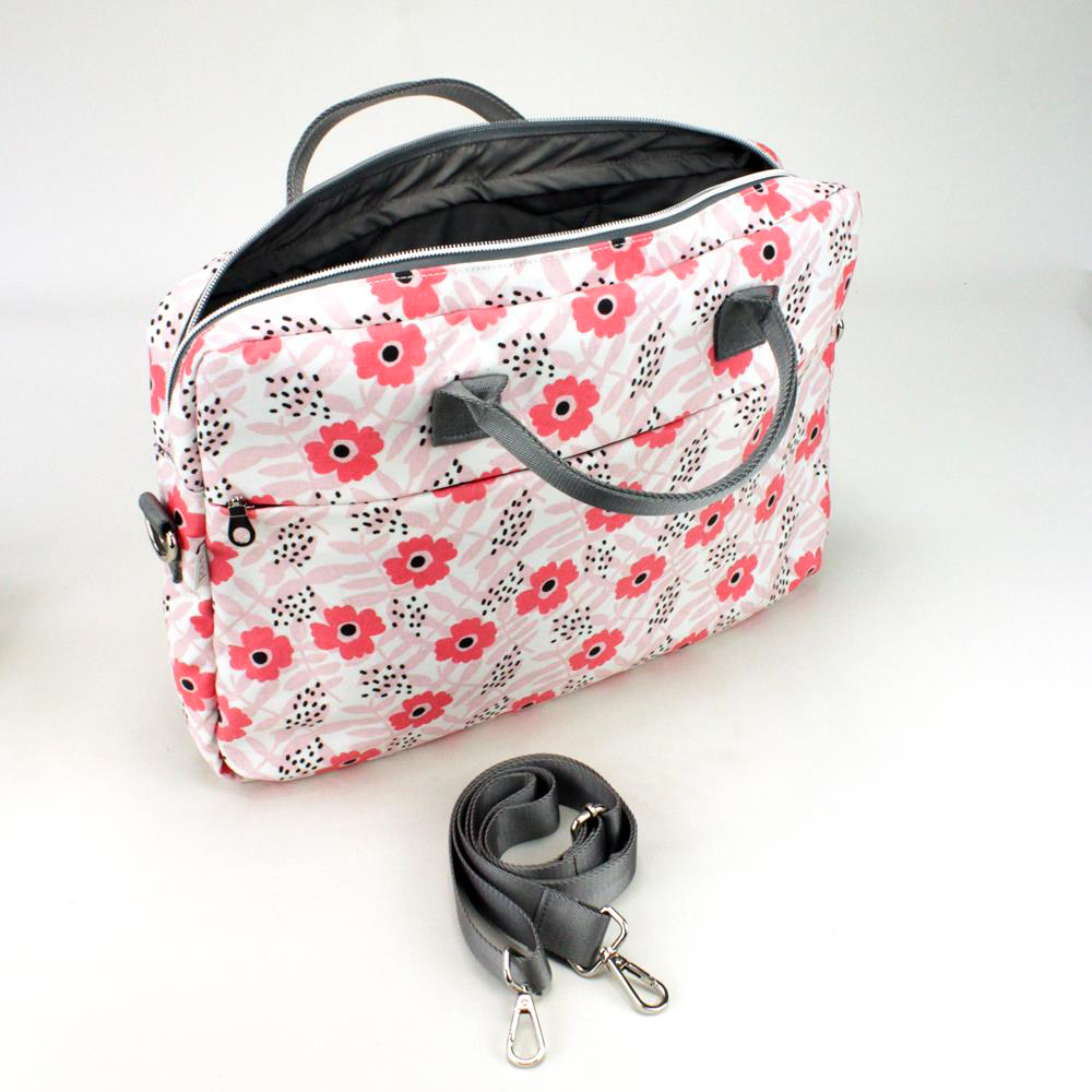 Borsa porta PC in tessuto canvas stampato e rivestito, resistente all’acqua. Dispone di uno scomparto principale chiuso da una zip. Interno foderato ed imbottito con un’ampia tasca a scomparto. Manici robusti e una tracolla rimovibile e regolabile. Un’ampia tasca con chiusura zip posteriore esterna.