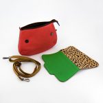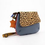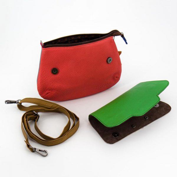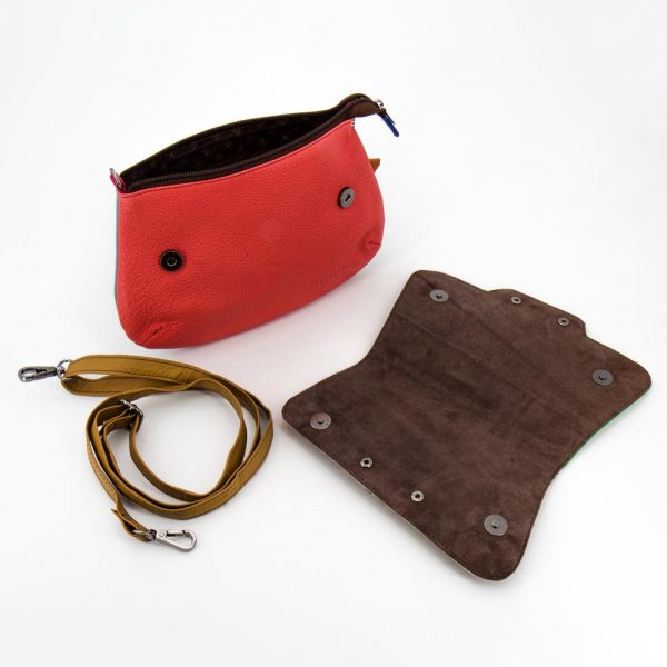 Borsa a tracolla con due tasche, chiusura a zip. Padella removibile con bottoni magnetici