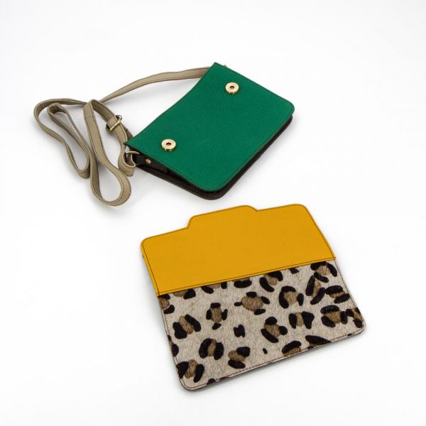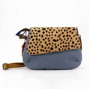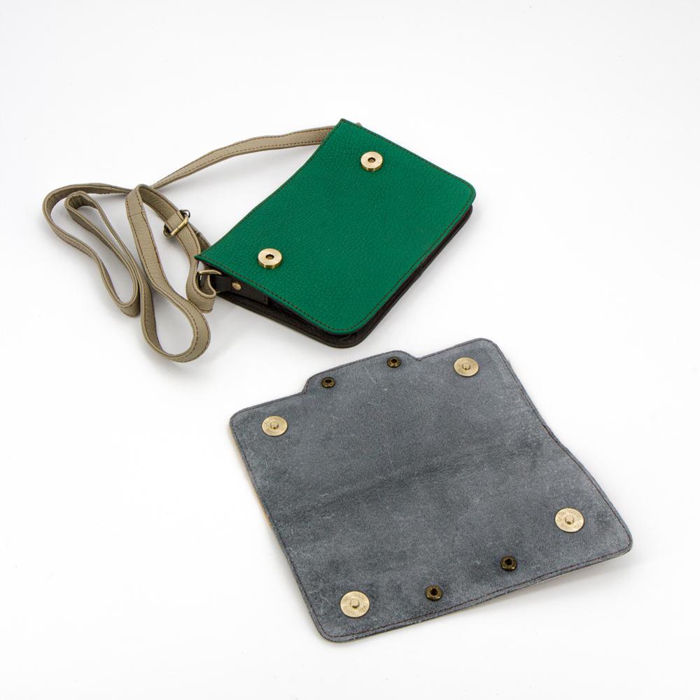 Borsa a tracolla con due tasche, chiusura a zip. Padella removibile con bottoni magnetici