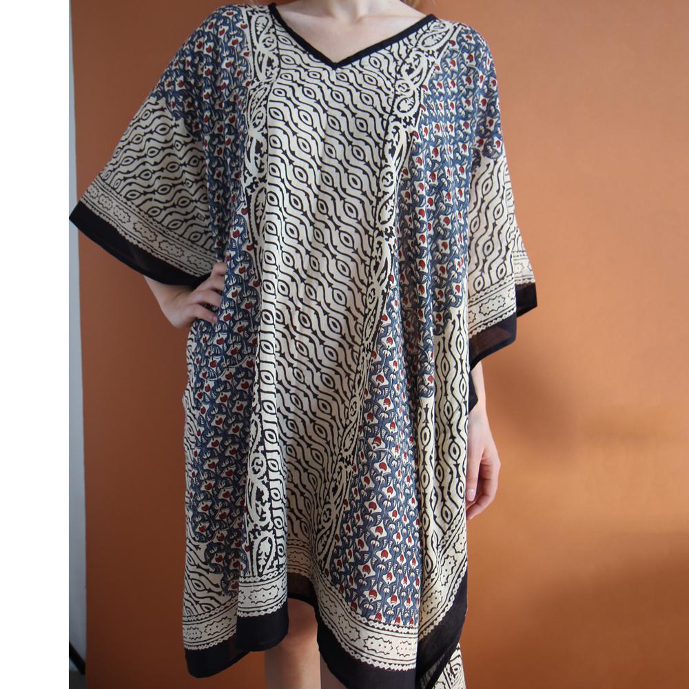 Caftano cotone stampa a mano blockprint disegno Fiore di Pavone