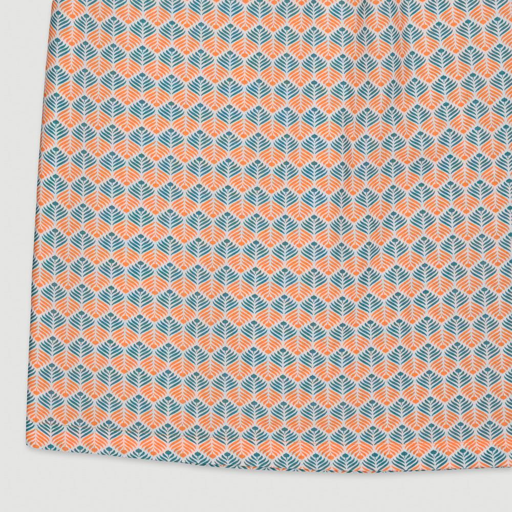 Disegno palme stilizzate: arancio melone,verde teal,bianco. Tessuto: voile di cotone