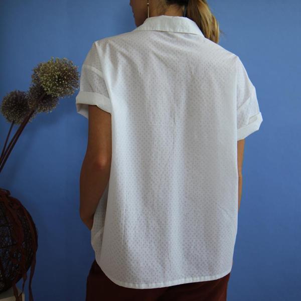 Home ABBIGLIAMENTO ESTIVO Collezione Trame PE 26 Camicia Eta bianco, motivo a pois L