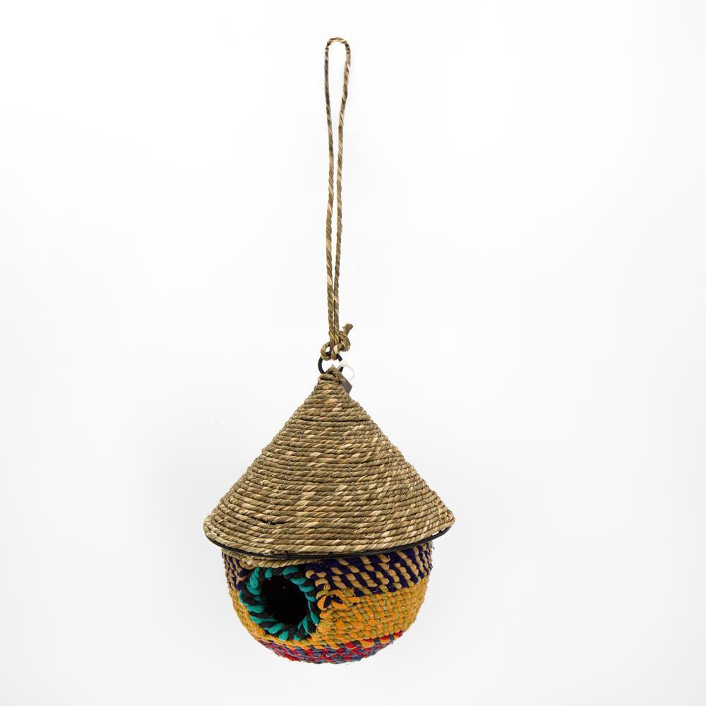 Casetta per uccelli metallo/seagrass capanna 19x19x23cm