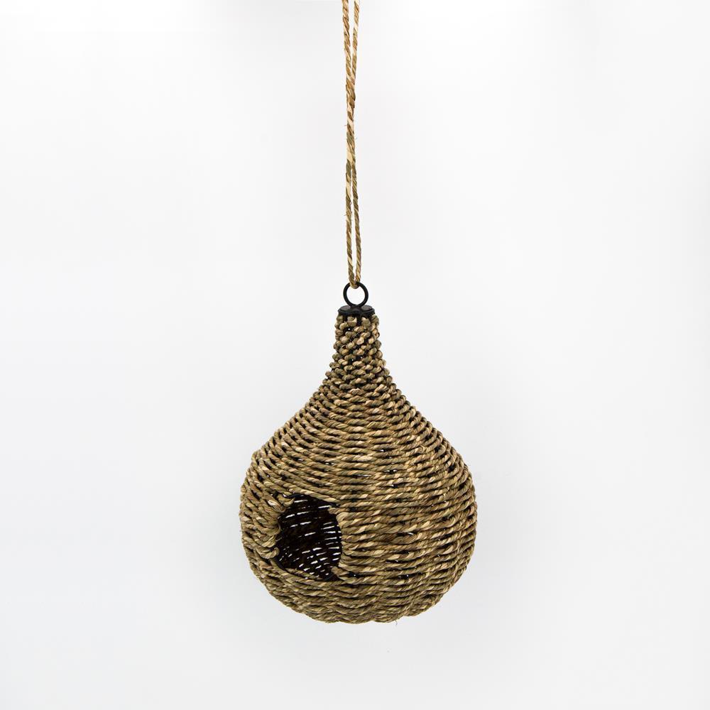 Casetta per uccelli metallo/seagrass goccia 19x19x25cm