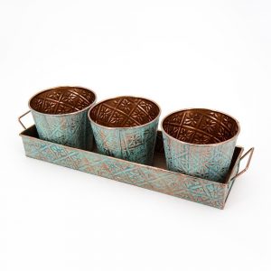 Vassoio con 3 portavaso metallo