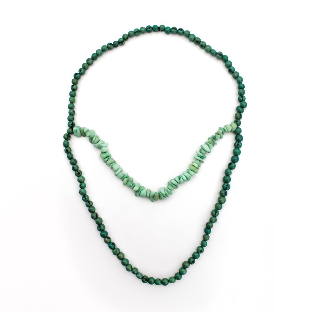 Collana lunga di perle acai in doppio filo e perle di tagua irregolare. Dimensioni: lunghezza 35 cm