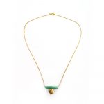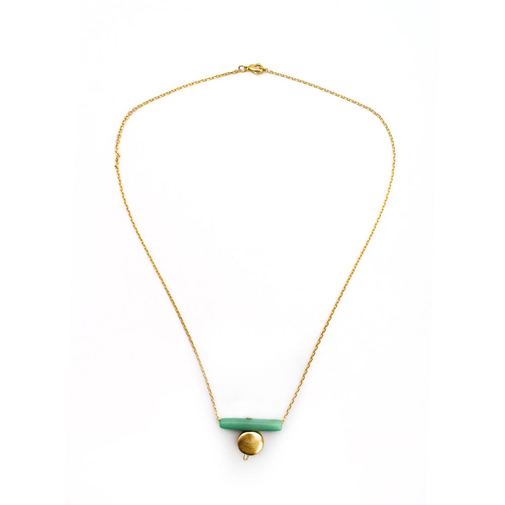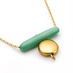 Collana corta con un elemento in tagua a forma di cilindro e un disco in metallo placcato oro su una sottile catenina in metallo placcato oro. Lunghezza collana 23 cm