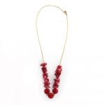 Collana corta con elementi irregolari di tagua, 3 dischi di tagua e piccole perline in metallo placcato oro su una sottile catenina in metallo placcato oro. Lunghezza collana 23 cm