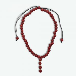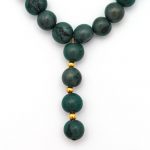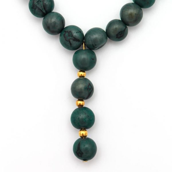 Collana media di perle di acai e piccole perline in metallo dorato su cordino in cotone regolabile. Dimensione: 36 cm massima estensione