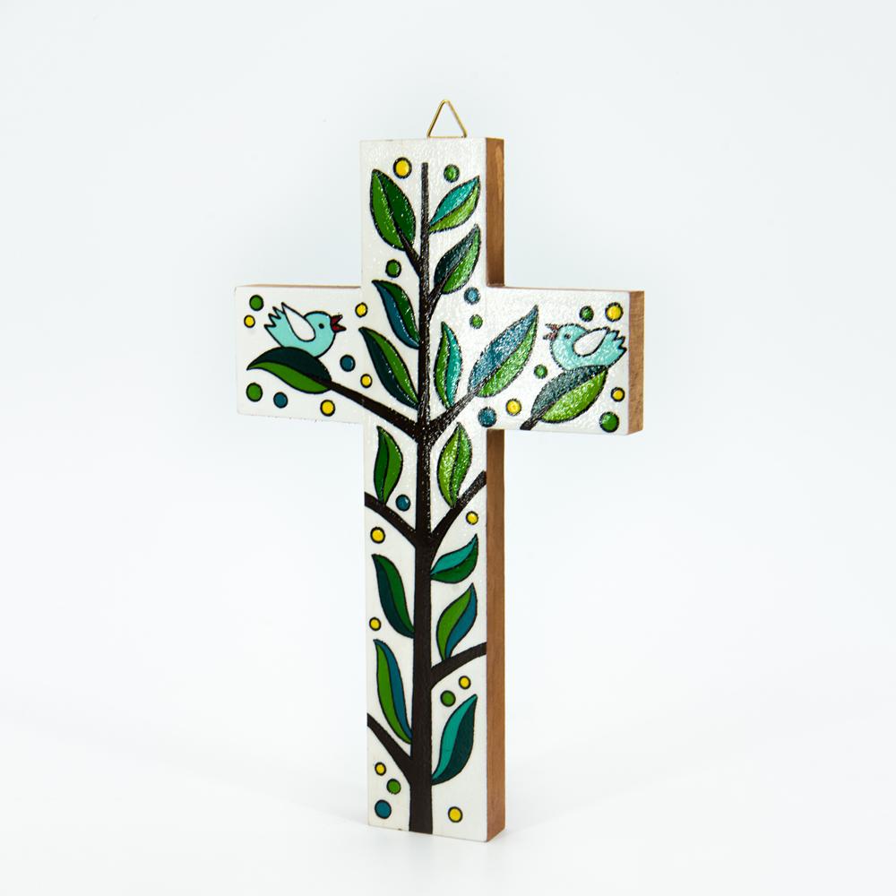 Home ARTICOLI RELIGIOSI Croci e rosari Croce Albero della Vita verde 20x12cm