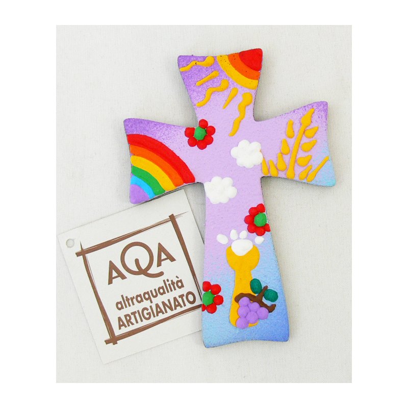 Croce Arcobaleno legno 10x7cm