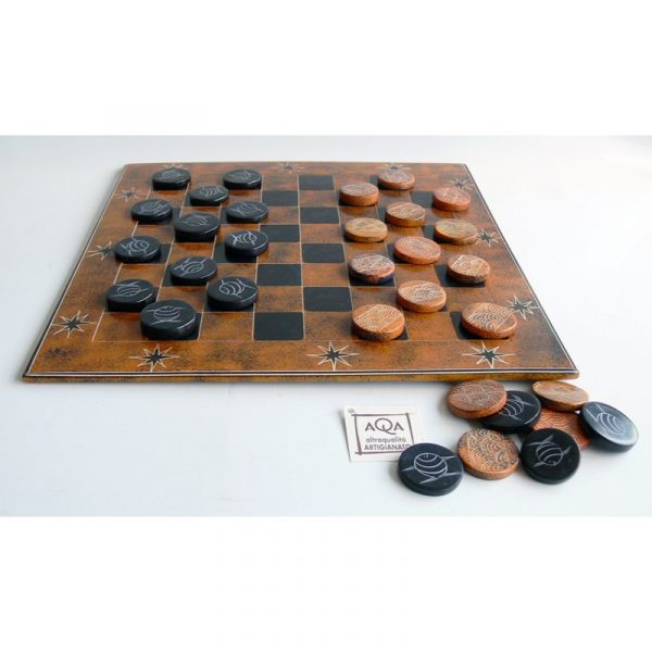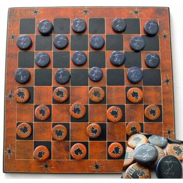 Home MATERIALI Pietra Saponaria Dama elefanti/cacciatori arancio/nera 30
