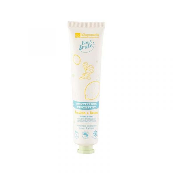 Dentifricio delicato omeocompatibile per adulti e bambini. A base di oli essenziali di Zenzero e Limone biologici