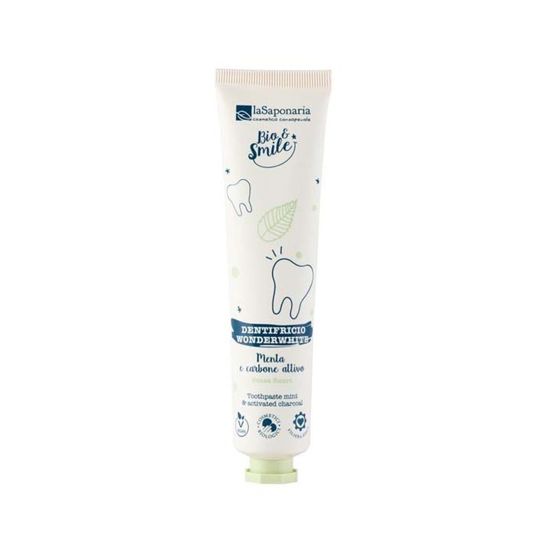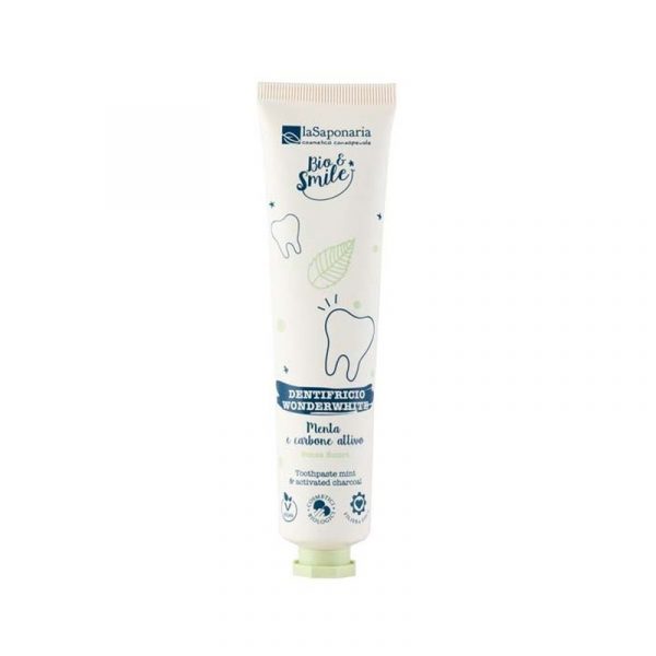 La confezione del dentifricio è in bioplastica, derivata dalla canna da zucchero.