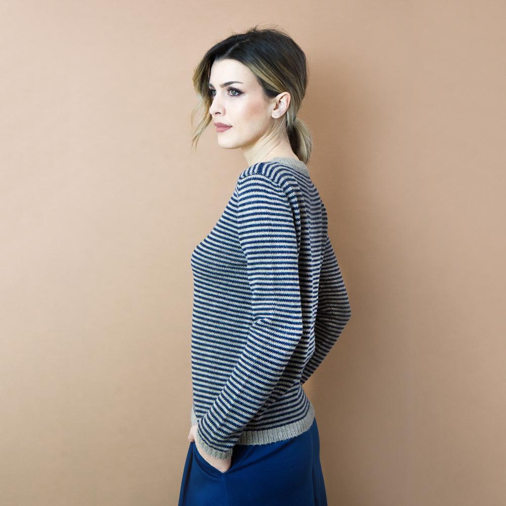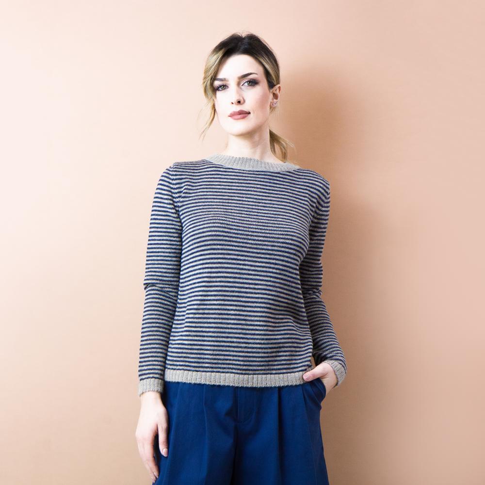 Maglia Edera righe indaco e beige L/XL