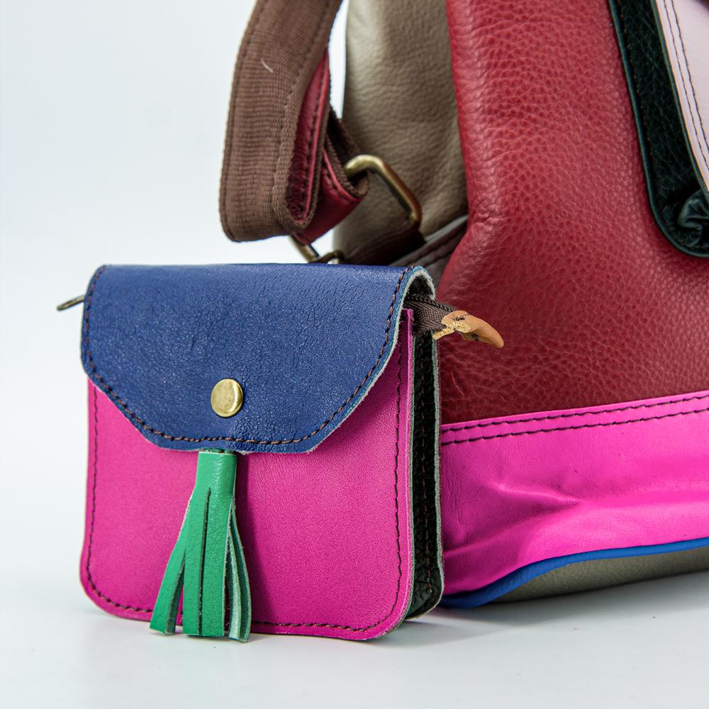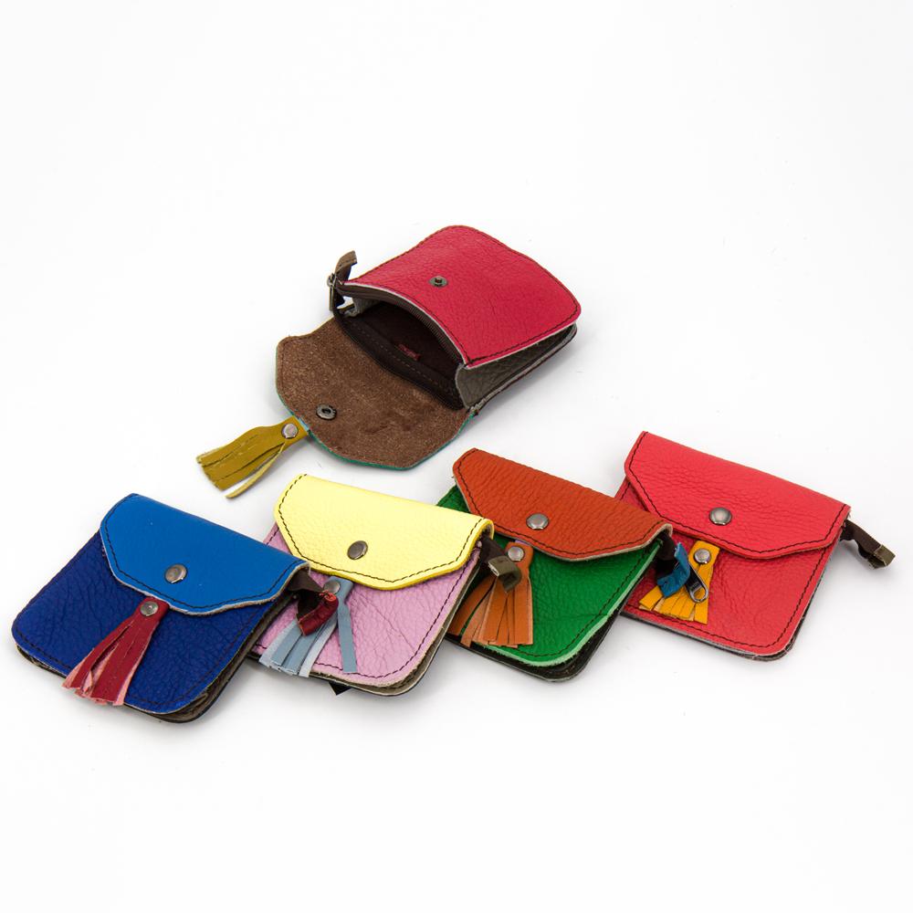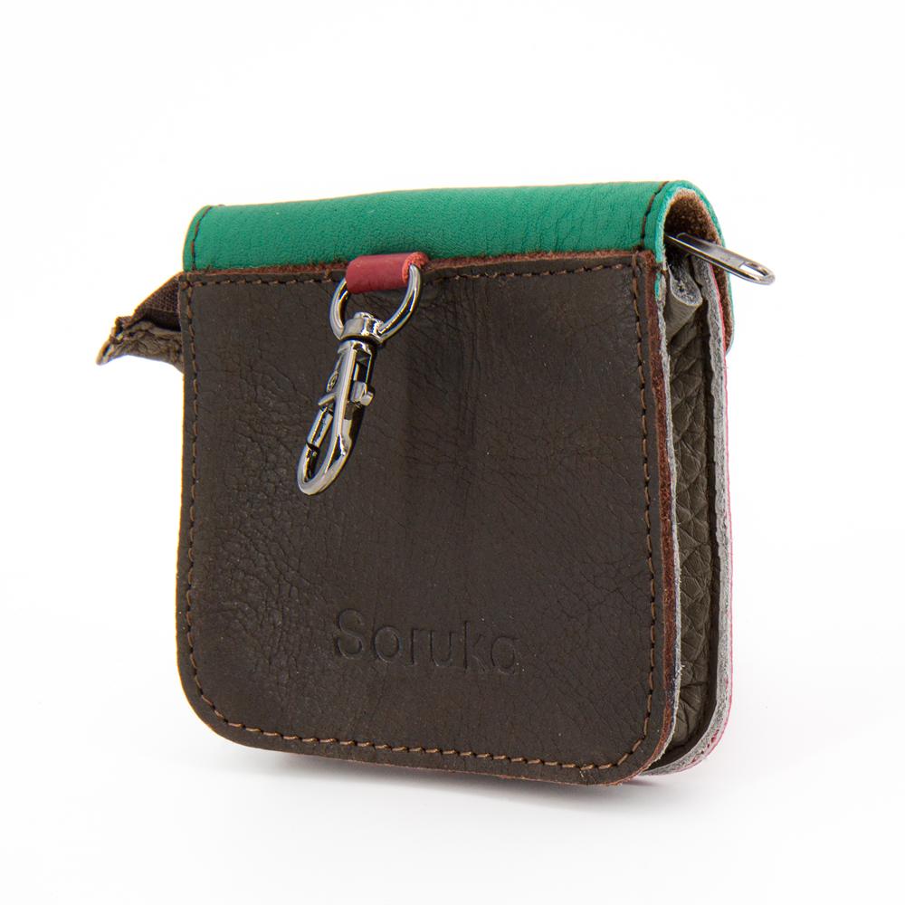 Portamonete con gancio ed una tasca a chiusura zip. Bottone a pressione.
