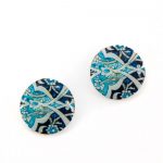 Orecchini a perno a forma di bottone in ceramica a freddo decorata. Chiusura a perno in metallo anallergico. blu, azzurro, bianco diametro 1,5cm ceramica a freddo decorata