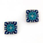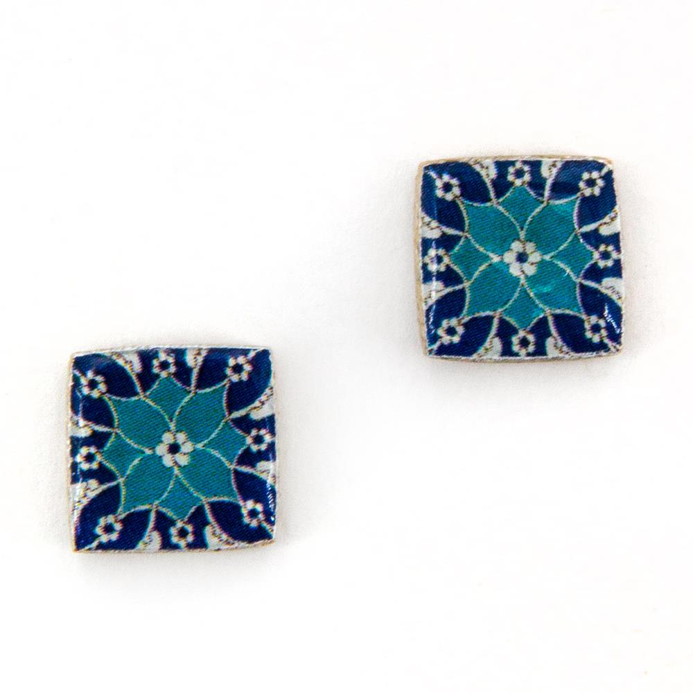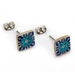 Orecchini a perno a forma di quadrato in ceramica a freddo decorata. Chiusura a perno in metallo anallergico. blu, azzurro, bianco 1x1cm ceramica a freddo decorata