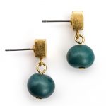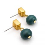 Orecchini pendenti con elemento a forma di cubo in metallo placcato oro e una perla di acai. Chiusura a perno in acciaio inossidabile anallergico. Lunghezza orecchino 2 cm