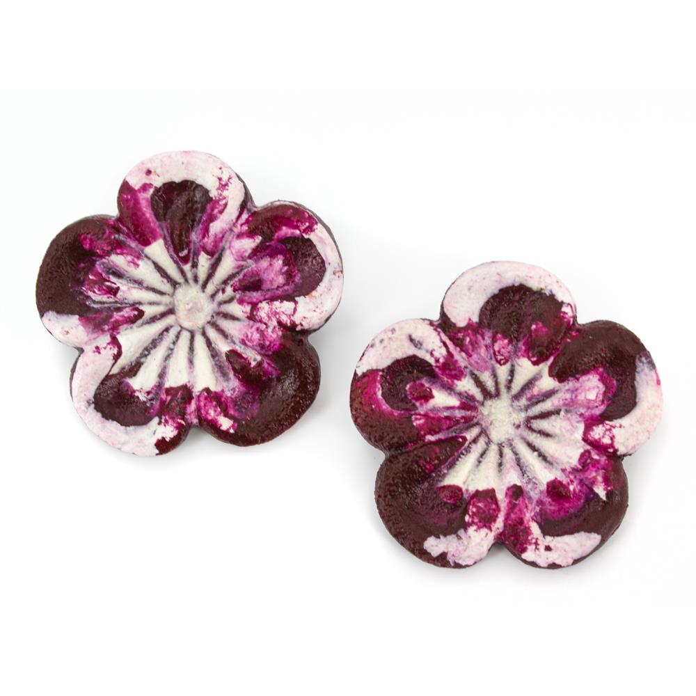 Orecchini Gelsomino in gomma naturale rosa e viola diametro 3 cm