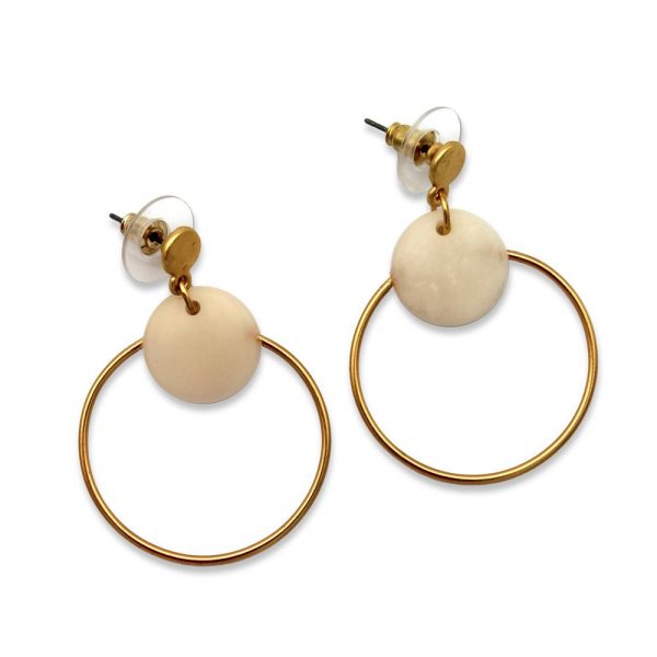 Orecchini a perno con anello placcato oro e un mini disco in tagua. Dimensione: 4,5 cm