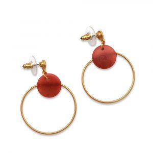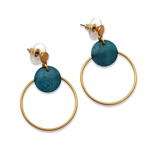 Orecchini a perno con anello placcato oro e un mini disco in tagua. Dimensione: 4,5 cm