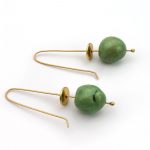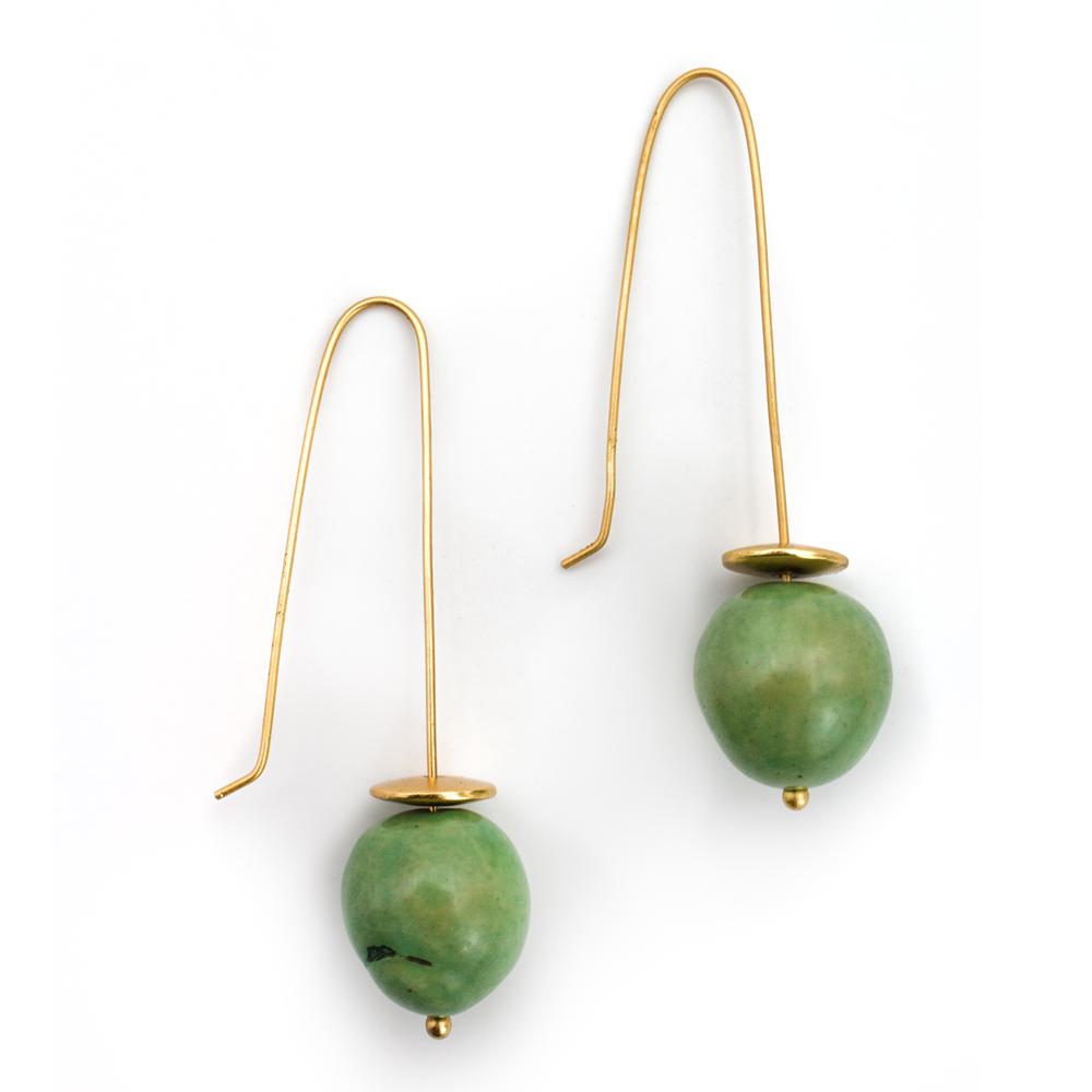 Orecchini pendenti con un seme di chicon e un disco in metallo placcato oro. Gancio a stelo in metallo placcato oro anallergico. Lunghezza orecchino 7 cm