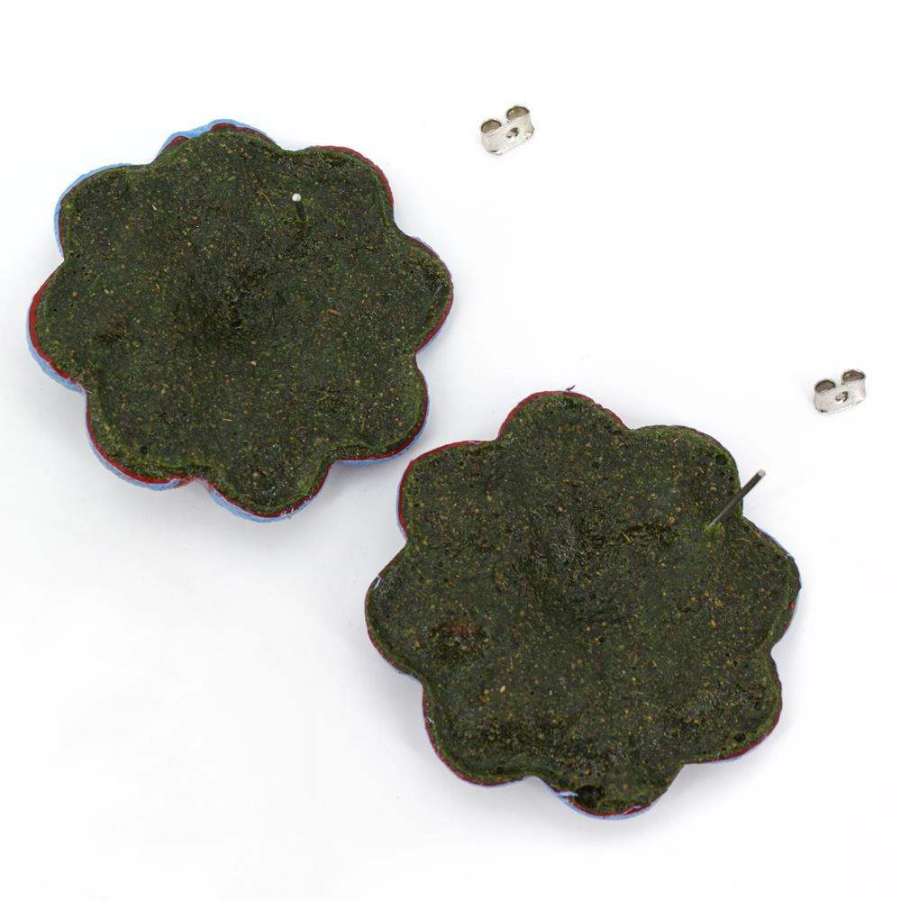 Orecchini fiore Azulejo in gomma naturale indaco e rosso diametro 4 cm