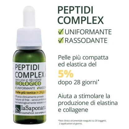 Peptidi Complex migliora il tono della pelle, aiuta a contrastare il naturale cedimento cutaneo e a combattere i segni del tempo come rughe, perdita di elasticità e macchie. La pelle di viso e seno apparirà più distesa, compatta e rassodata.