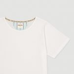 Maglia avorio chiaro. Disegno righe: azzurro tenue,avorio chiaro,blu profondo. Tessuto: single Jersey + voile di cotone