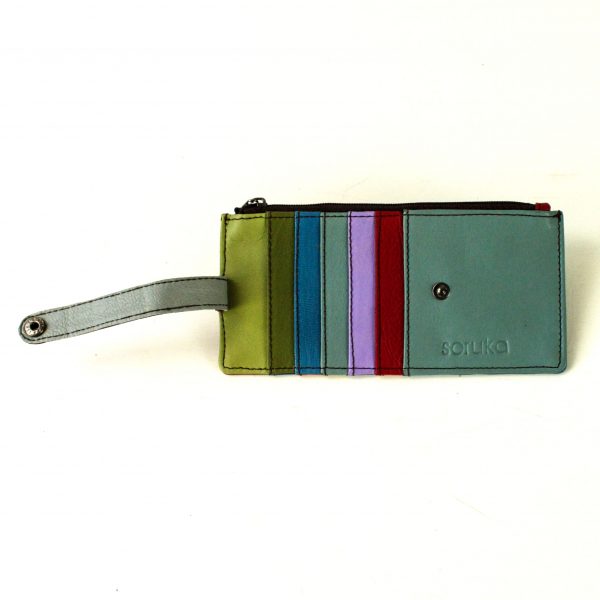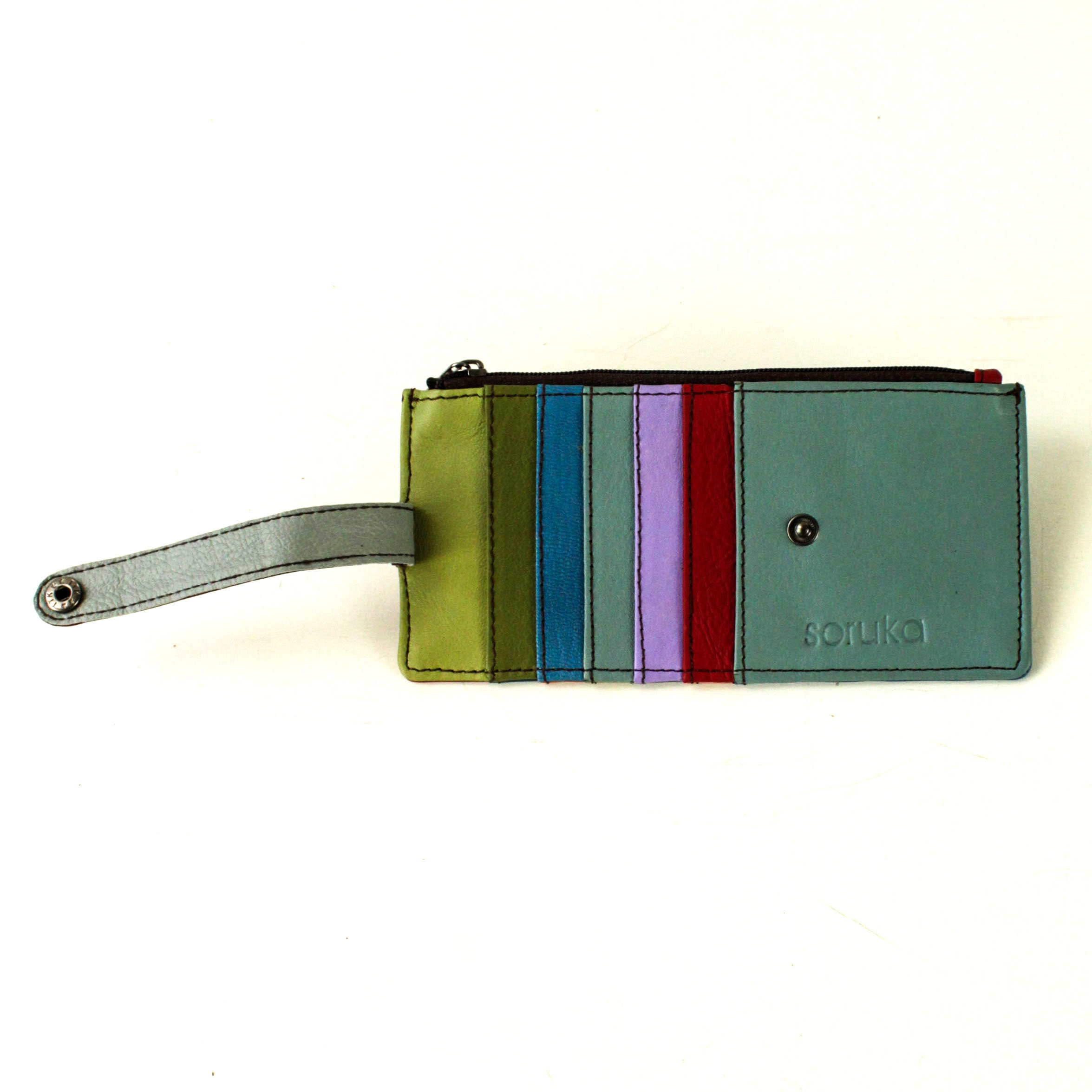 Soruka- La foto è rappresentativa del solo MODELLO della borsa e non della combinazione di colore del pellame!! Portacarte multicolore dotato di un unico scomparto portamonete chiuso da zip e sei taschini a scomparto portacarte chiusi da un laccetto con chiusura magnetica. Accessorio in pelle liscia.