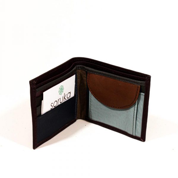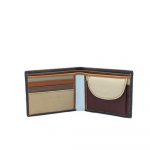 Dotato di due scomparti per banconote, tre per tessere , due a scomparsa e uno per le monete, presenta la classica ma intramontabile chiusura a libro.