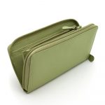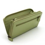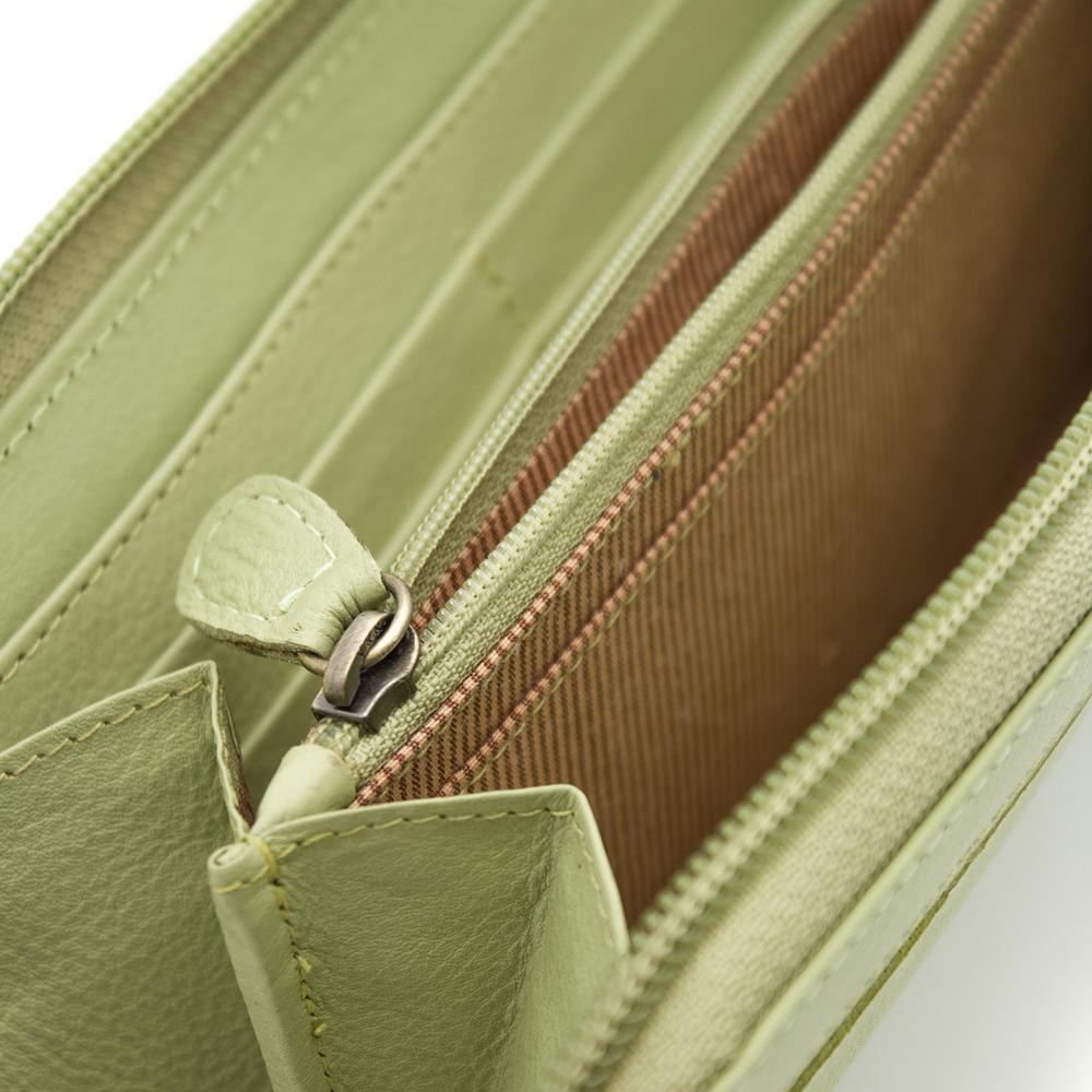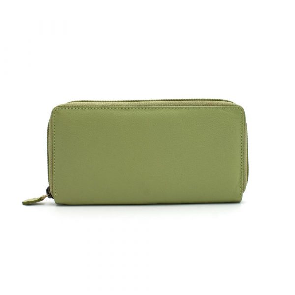 Portafoglio donna in morbida nappa bovina, con chiusura a zip all’interno 3 scomparti per le banconote, uno per le monete con chiusura a zip, vari porta carte. Interno foderato in cotone.