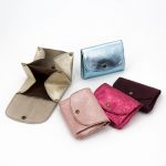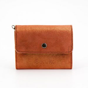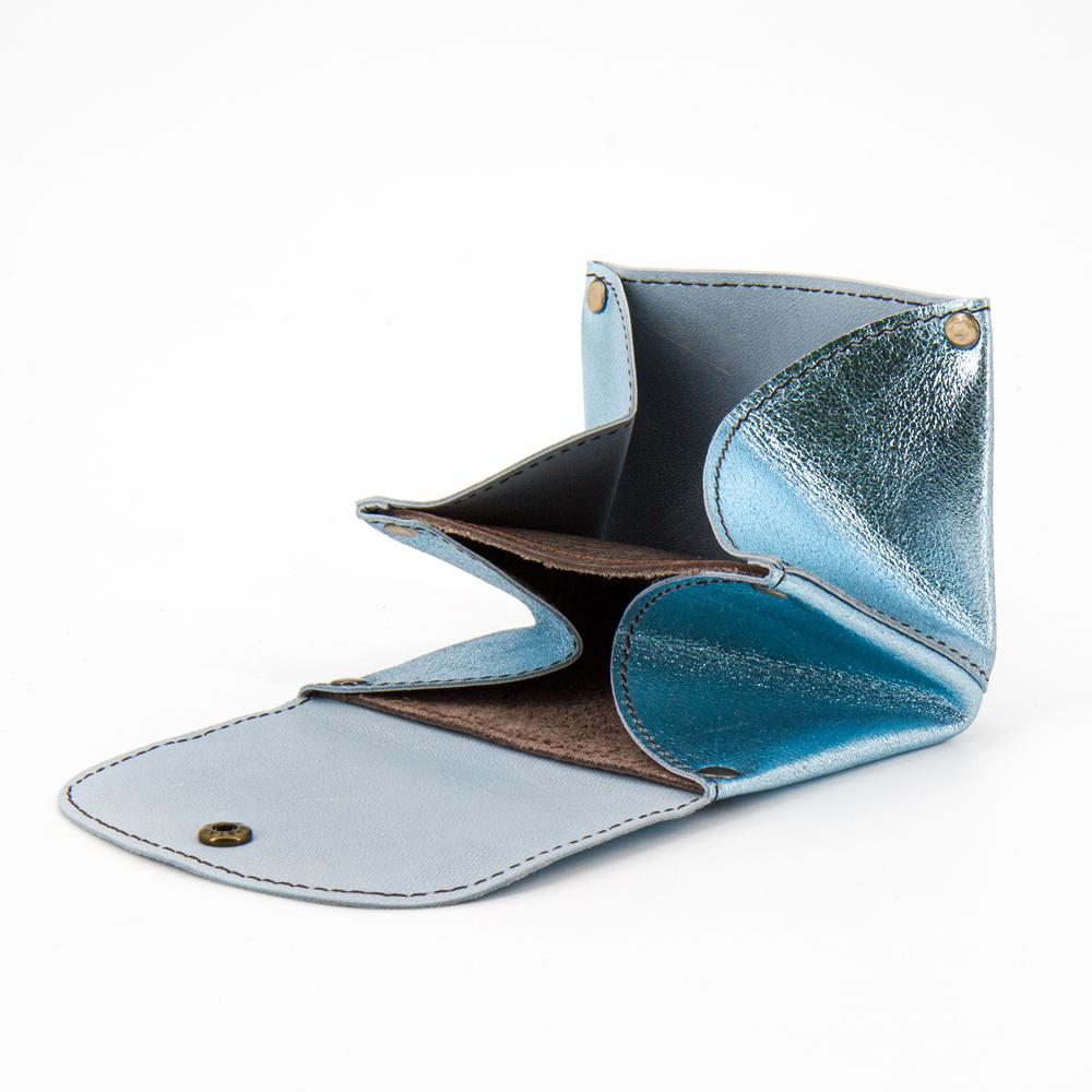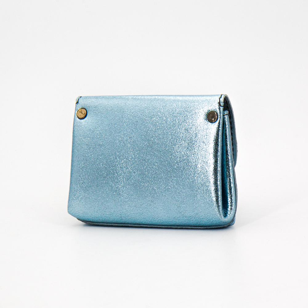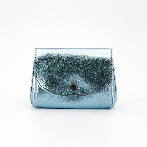 Portamonete a due tasche. Chiusura con bottone a pressione.