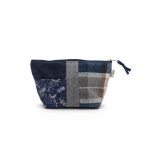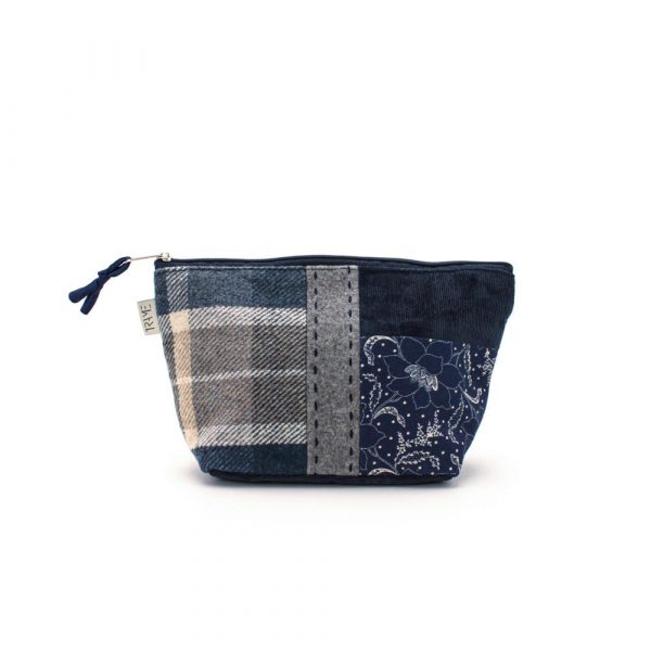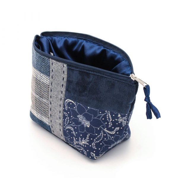 Portatrucco medio in mix di tessuti e fantasie su base di cotone spesso. Chiusura con zip. Interno foderato con tasche a scomparto.