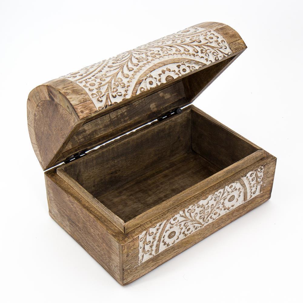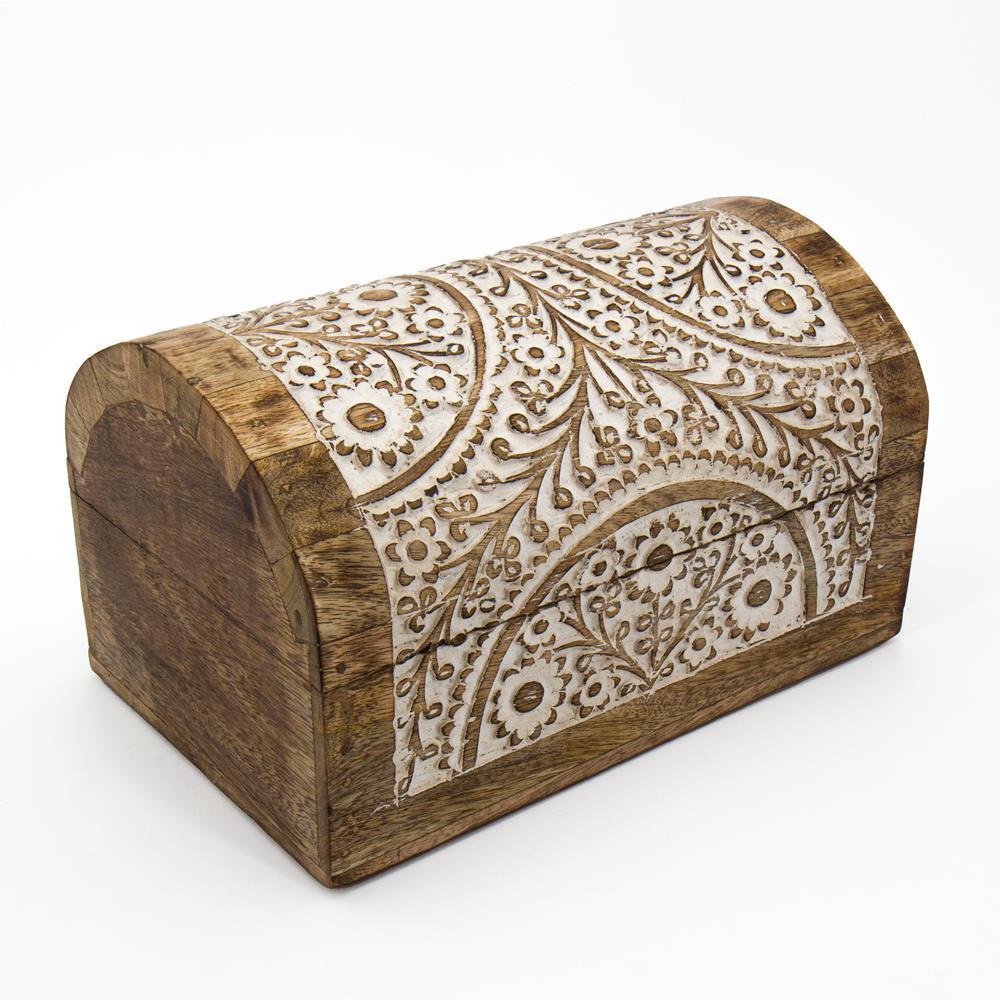 Scatola legno bauletto con intarsi bianchi 23x15x14cm